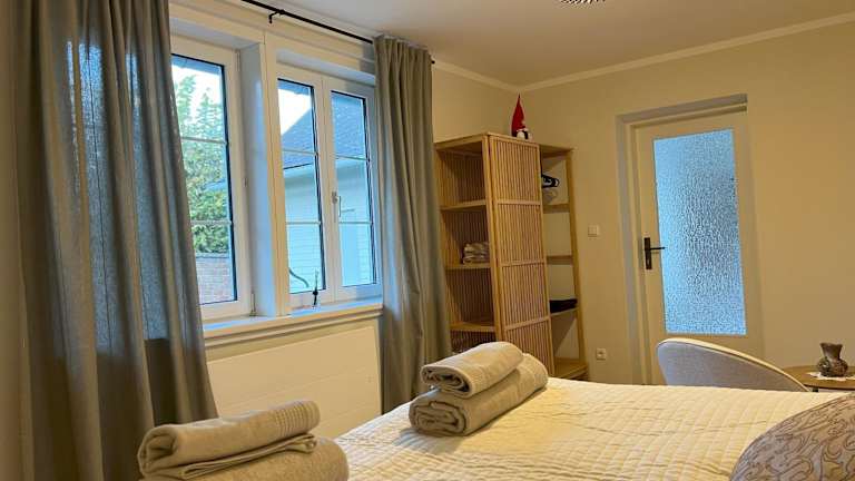 Das Ferienhaus besteht aus 2 Schlafzimmern und einem Wohnzimmer. Die voll ausgestattete Küche verfügt über einen Kühlschrank und eine Kaffeemaschine. Ein Badezimmer mit Dusche und Haartrockner ist ebenfalls vorhanden. Handtücher und Bettwäsche werden bereitgestellt.