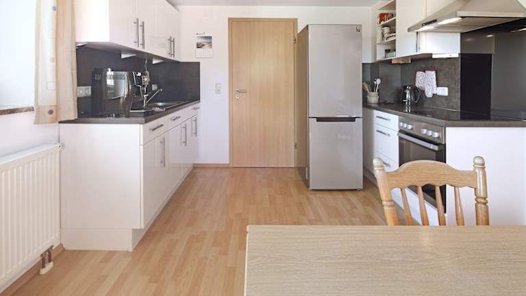 Unser Ferienhaus mit ca. 100 qm für Sie zur Alleinbenutzung teilt sich folgendermaßen auf: Im EG befinden sich eine voll ausgestattete Küche mit Eckbank, ein Wohnzimmer mit großer Sofalandschaft, eine Abstellkammer und das Bad mit Dusche, Badewanne und WC. Im 1. Stock gelangen Sie über die Galerie mit Sichtbalken in unsere 3 Schlafzimmer. Davon ist eines ein Durchgangszimmer, bestens geeignet für eine Familie. Alle drei Schlafzimmer verfügen über Verdunkelungsrollos. Ein zusätzliches Bad befindet sich ebenso auf diesem Stockwerk.