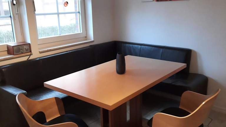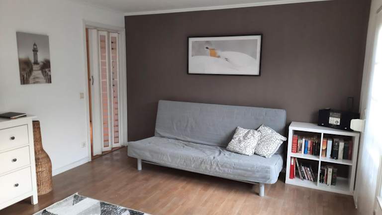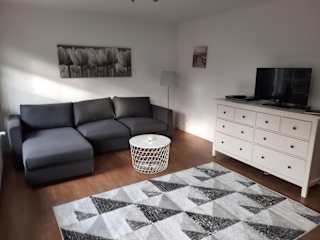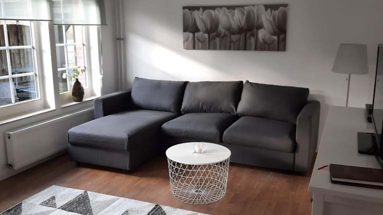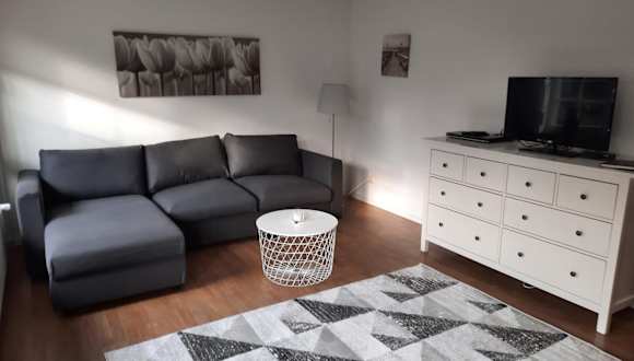 Die Ferienwohnung verfügt über ein Schlafzimmer und ein Wohnzimmer mit einem TV. Die voll ausgestattete Küche beinhaltet einen Kühlschrank und einen Geschirrspüler. Zudem beinhaltet die Wohnung ein Badezimmer mit einer Dusche. Die Einrichtung bietet all die Bequemlichkeit, die für einen angenehmen Aufenthalt notwendig ist.