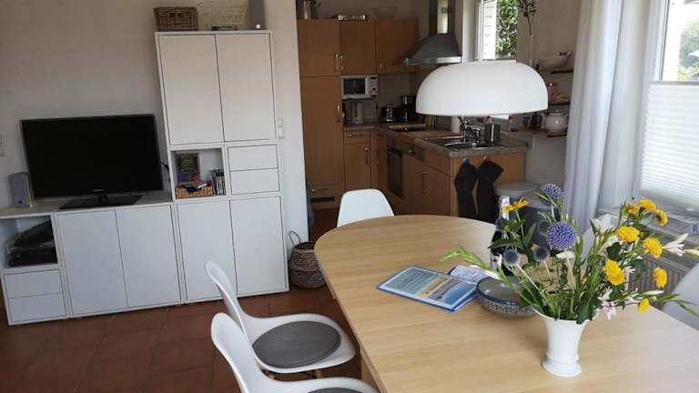 Das Ferienhaus ist im Erdgeschoss gelegen und beinhaltet 3 Schlafzimmer. Zur Ausstattung gehören ein Flachbild-TV mit Satellitenkanälen und eine voll ausgestattete Küche, die einen Kühlschrank, Geschirrspüler, Waschmaschine, Ofen sowie Mikrowelle bietet.