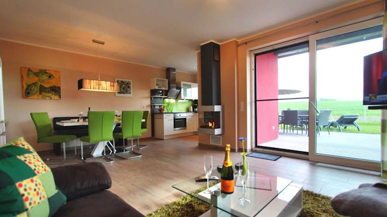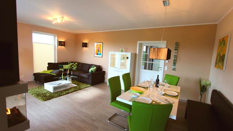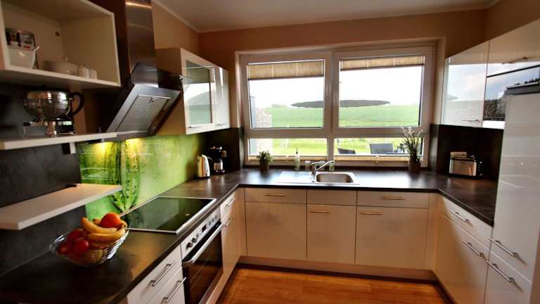 Das Ferienhaus umfasst 3 Schlafzimmer, ein Wohnzimmer mit Flachbild-TV sowie eine gut ausgestattete Küche mit Kühlschrank und Geschirrspüler. Es gibt zwei Badezimmer mit Dusche. Auf Wunsch können Handtücher und Bettwäsche zur Verfügung gestellt werden.