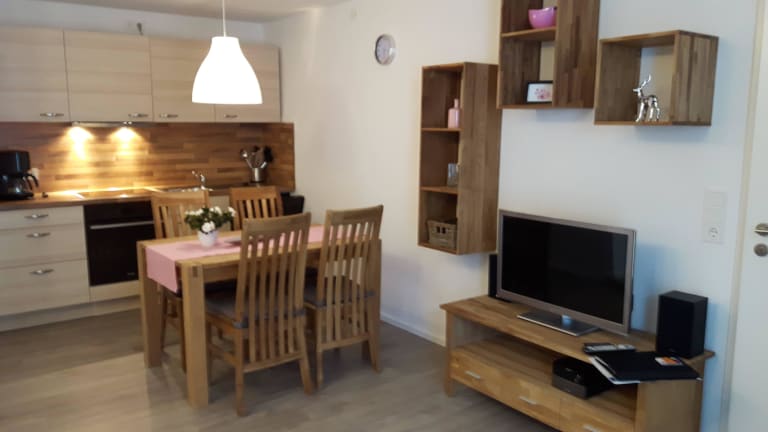 2/ 3 Zimmer Wohnungen von 52m² bis 95m² mit Boxspringbetten, Küche, Bad und Bergblick.