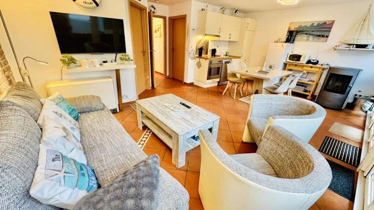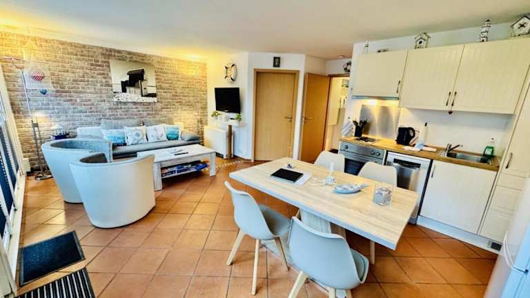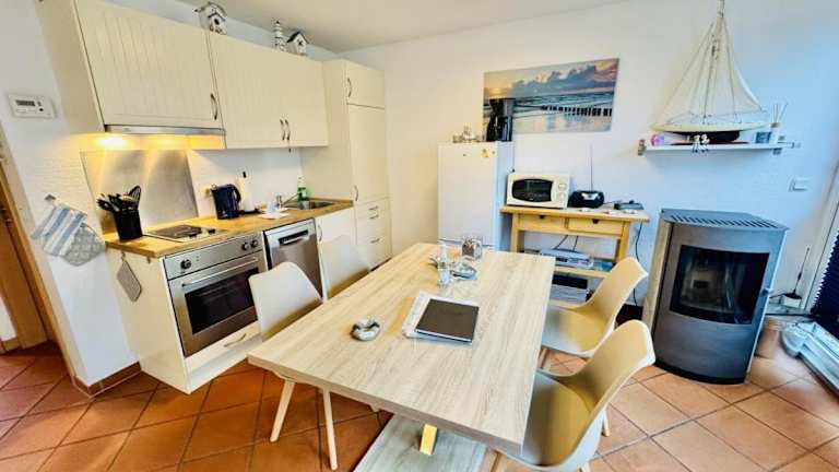 Das Ferienhaus ist ausgestattet mit 1 Schlafzimmer, einem TV mit Kabelkanälen und einer voll ausgestatteten Küchenzeile, die einen Kühlschrank, Geschirrspüler, Waschmaschine, Ofen und Mikrowelle umfasst.