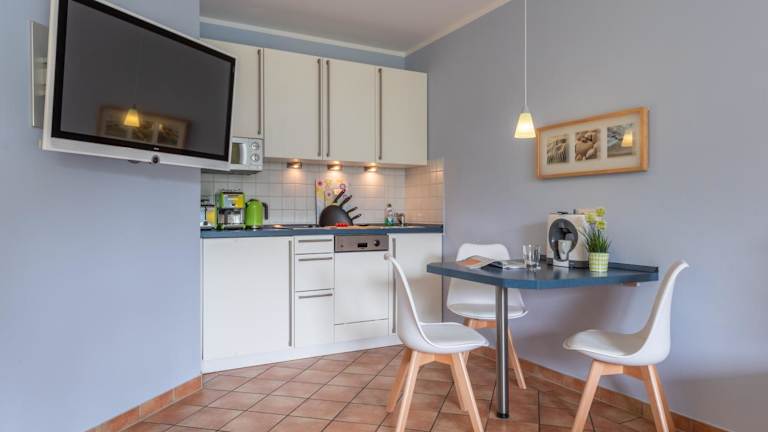Die Zimmer im Ferienhaus Lütten Kulli - 2 sind mit Fliesenböden ausgestattet und verfügen über eine voll ausgestattete Küchenzeile mit Kühlschrank, Geschirrspüler, Mikrowelle und Herdplatte. Ein Essbereich, ein Flachbild-TV mit Satellitenkanälen und ein eigenes Badezimmer mit Dusche und Haartrockner gehören ebenfalls zur Ausstattung. Außerdem sind ein Wasserkocher und eine Kaffeemaschine vorhanden, und die Unterkunft bietet allergikerfreundliche Zimmer.