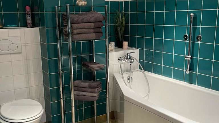 Die Ferienwohnung bietet ein Schlafzimmer und ein Wohnzimmer. Die gut eingerichtete Küche verfügt über einen Kühlschrank sowie einen Geschirrspüler. Handtücher und Bettwäsche sind ebenfalls erhältlich.