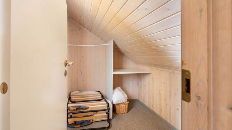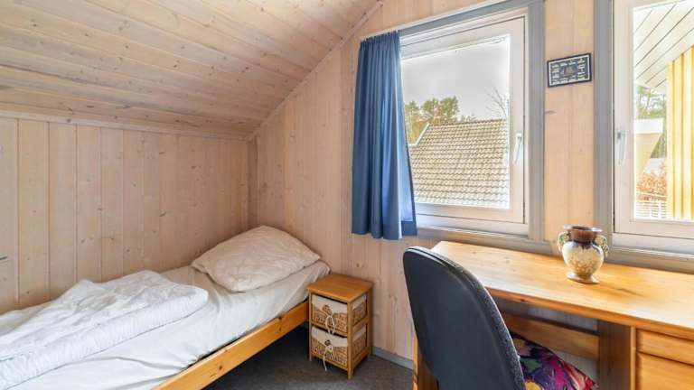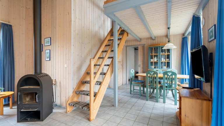 Das Ferienhaus beinhaltet zwei Schlafzimmer, ein Wohnzimmer sowie eine voll ausgestattete Küche mit Kühlschrank und einem Essbereich. Ein Badezimmer und ein TV mit Kabelkanälen runden die Ausstattung ab.
