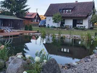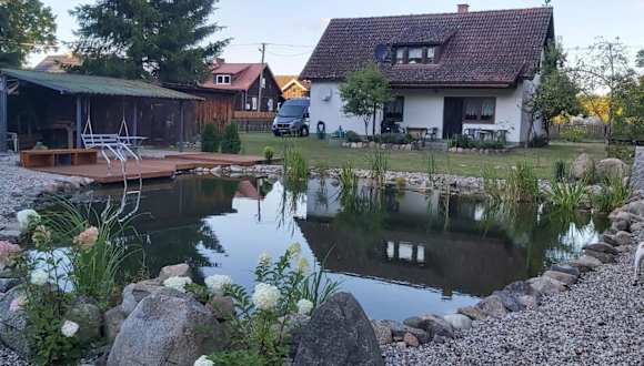 Das Ferienhaus mit Schwimmteich bietet Gartenblick und verfügt über einen Aussenpool sowie Grillmöglichkeiten. Es wird von einem privaten Gastgeber geführt und bietet einen kostenlosen Privatparkplatz.