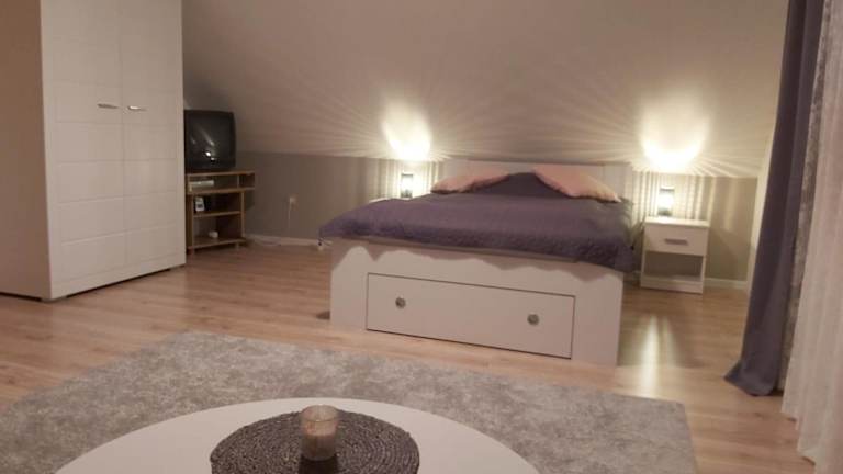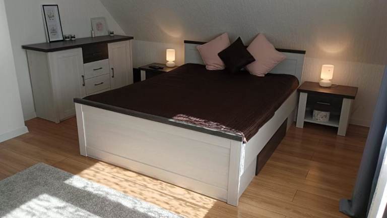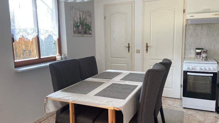 Das Ferienhaus mit Schwimmteich befindet sich in einer idyllischen Lage, umgeben von einer naturnahen Umgebung, die Möglichkeiten zum Wandern, Angeln und Velofahren bietet. Der nächstgelegene Flughafen, der Flughafen Olsztyn-Mazury, ist ungefähr 35 km entfernt.