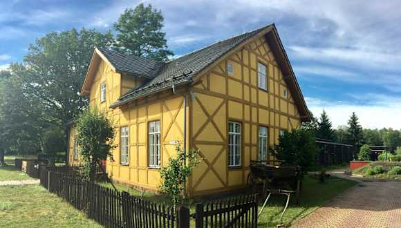 Das Ferienhaus Museumsherberge Glashütte befindet sich in einer ruhigen Lage nahe der Stadt Baruth, nur 450 m vom Baruther Glasbläsermuseum entfernt. Die Umgebung bietet zahlreiche Wandermöglichkeiten und Wege zum Velofahren, die direkt vor der Herberge beginnen. Die nächste Stadt mit Restaurants und Cafés erreichen Sie nach 6 km. Der tropische Freizeitpark Tropical Islands liegt 14 km entfernt. Der Bahnhof Klasdorf Glashütte ist in 3,4 km erreichbar und die Autobahn A13 befindet sich in 10 Fahrminuten Entfernung.