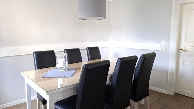 Das Ferienhaus umfasst 3 Schlafzimmer, ein Wohnzimmer sowie eine voll ausgestattete Küche mit Kühlschrank und Kaffeemaschine. Es gibt zwei Badezimmer mit Dusche und Haartrockner. Handtücher und Bettwäsche werden bereitgestellt. Auf Anfrage kann ein Wäscheset gegen Aufpreis bereitgestellt werden.