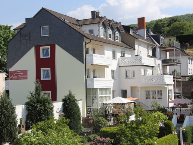 Wir befinden uns mitten im Kurzentrum von Bad Neuenahr, gegenüber der Ahr-Termen. Innenstadt, Kurpark, Spielbank, Tennisplätze und ein kombiniertes Frei - und Hallenbad sind in wenigen Minuten zu Fuß erreichbar.
