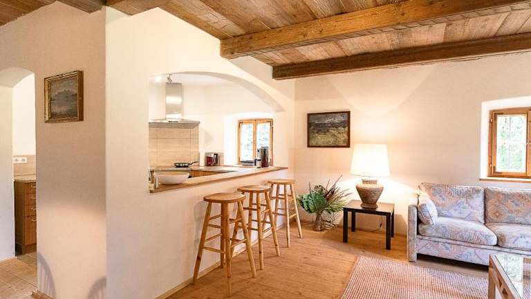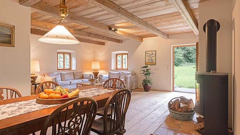Das Ferienhaus Nöstlbach liegt weniger als 13 km von Herrenchiemsee und 49 km vom Festspielhaus Erl entfernt. Die Umgebung bietet Möglichkeiten zum Velofahren und Skifahren.