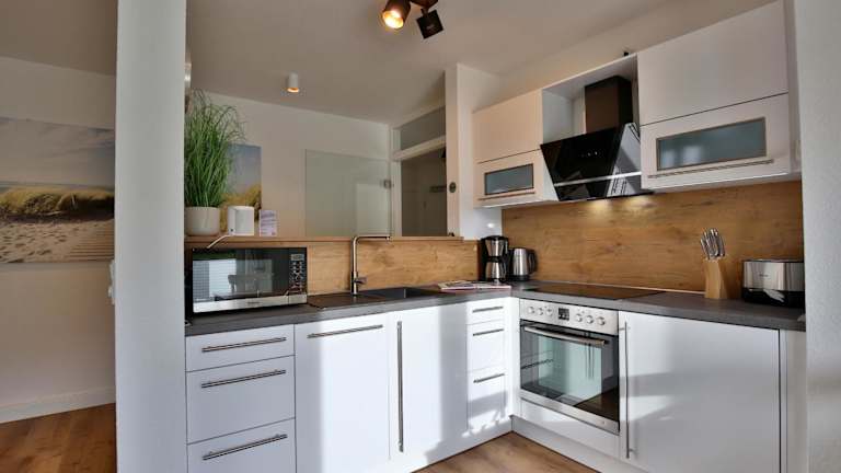 u. 1 Küche inkl. Geschirrspülmaschine, geKleinkindmütlicher Eßecke sowie Dusche u. WC, Telefon, TV, CD-Player und kostenlosem W-LAN. Wohnung mit tollem Meerblick für 2 - 4 Personen.