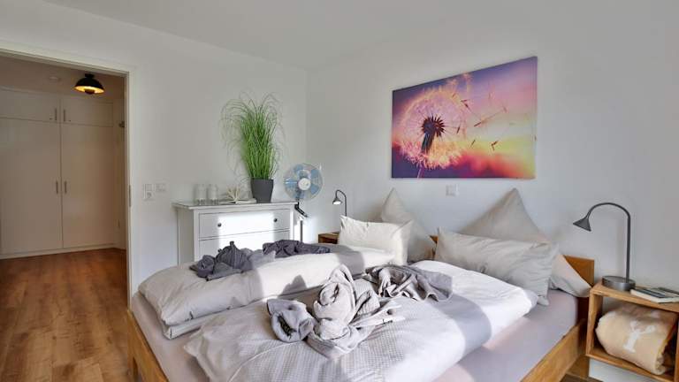 Ferienhaus Nordlicht verfügt über 14 Ferienwohnungen. Wir wohnten in einer FeWo bestehend aus 1 Schlafzimmer, einem Wohnschlafraum inkl. (sehr bequemem)Schrankbett 1,60 x 2m