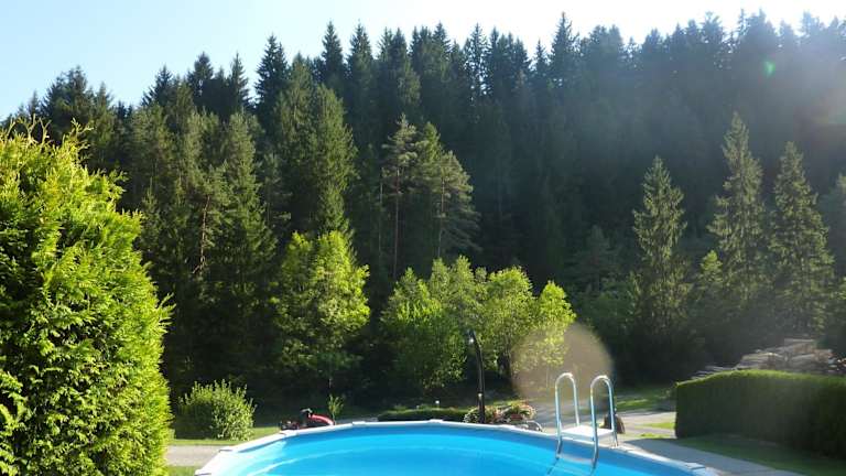 In der Umgebung des Ferienhauses Oitzl gibt es zahlreiche Wandermöglichkeiten. Der saisonale Aussenpool bietet eine erfrischende Abkühlung an heissen Tagen, ideal für Entspannung nach einem aktiven Tag in der Natur.