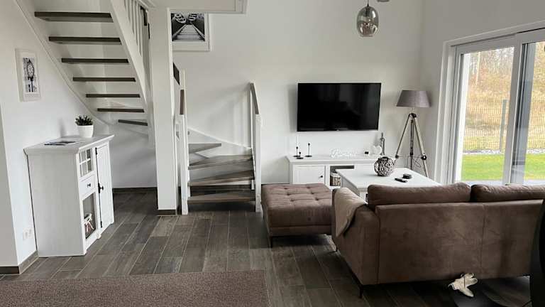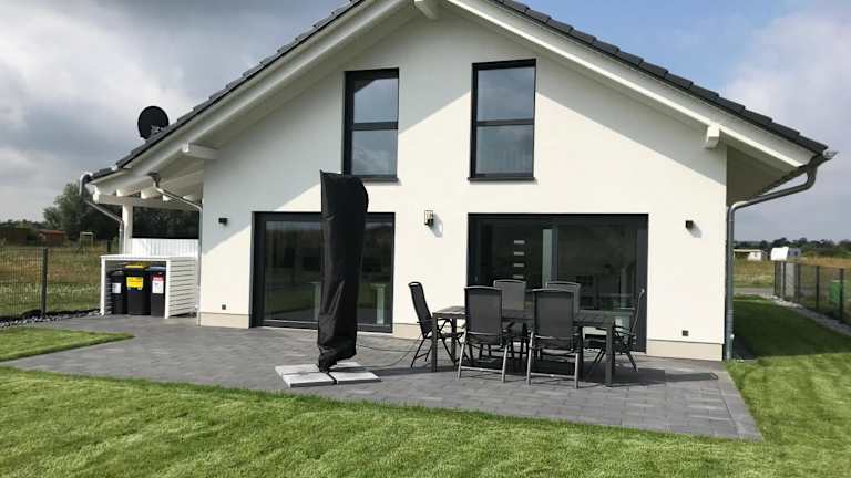 Das Ferienhaus Oskar liegt in Löbnitz, nur 100 Meter vom See und Strand entfernt. Es bietet direkten Zugang zum Wasser und ist von einer malerischen Gartenanlage umgeben.