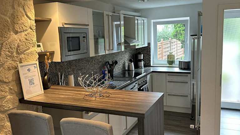 Das Ferienhaus verfügt über 2 Schlafzimmer und 1 Badezimmer. Zur Ausstattung gehören Bettwäsche, Handtücher sowie ein Flachbild-TV mit Satellitenkanälen. Der Essbereich ist in die voll ausgestattete Küche integriert. Die Terrasse mit Blick auf den Garten lädt zum Entspannen ein.