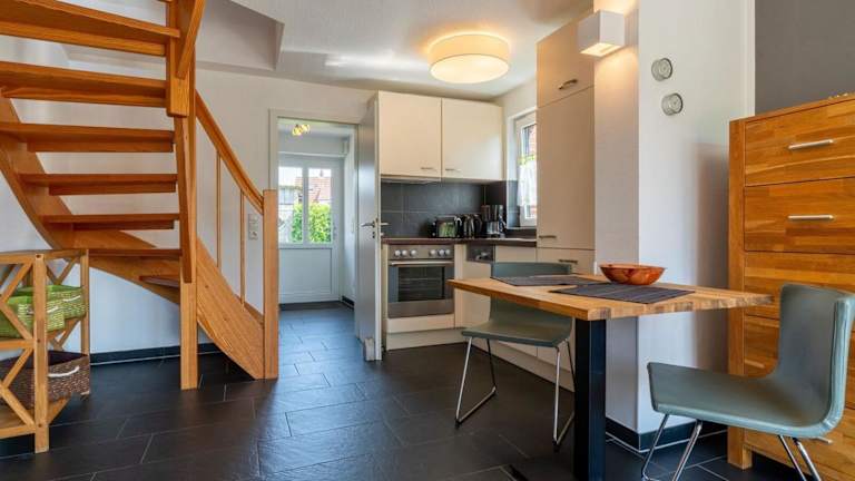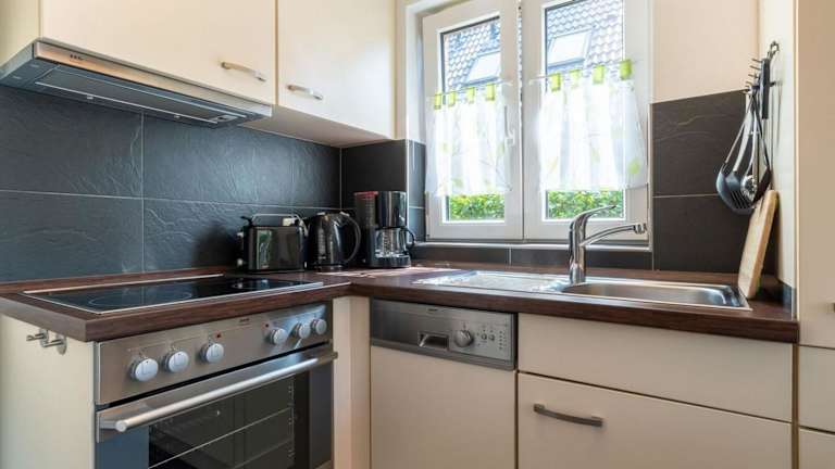 Das Ferienhaus verfügt über 1 Schlafzimmer sowie eine gut ausgestattete Küche mit Kühlschrank und Geschirrspüler. Das Wohnzimmer ist mit einem TV ausgestattet, was für Bequemlichkeit sorgt.