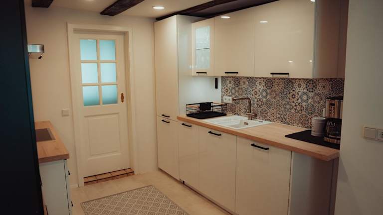 Die Ferienwohnung besteht aus 4 Schlafzimmern, einem Wohnzimmer und einer voll ausgestatteten Küche mit Geschirrspüler und Kaffeemaschine. Es sind 2 Badezimmer mit Dusche und Haartrockner vorhanden. Handtücher und Bettwäsche werden zur Verfügung gestellt.