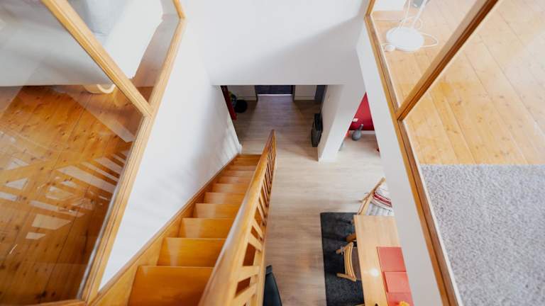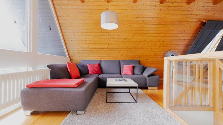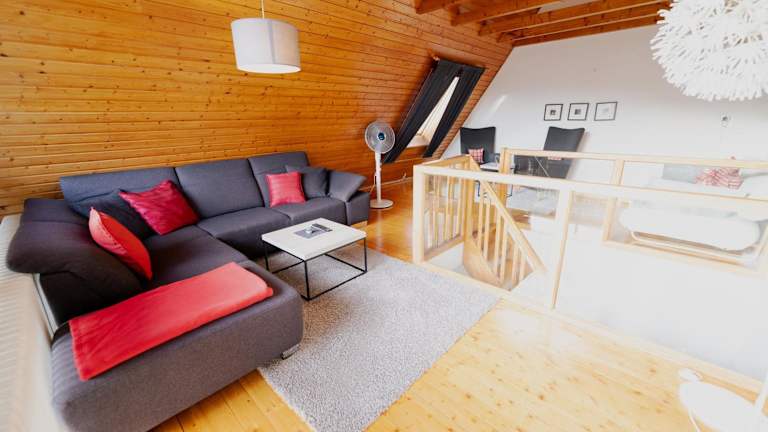Das Ferienhaus Schöne Aussicht Ferienwohnung Rot bietet gemütliche Übernachtungsmöglichkeiten mit einer Terrasse und einem Balkon. Die Unterkunft enthält alles Notwendige für einen angenehmen Aufenthalt in der Natur.