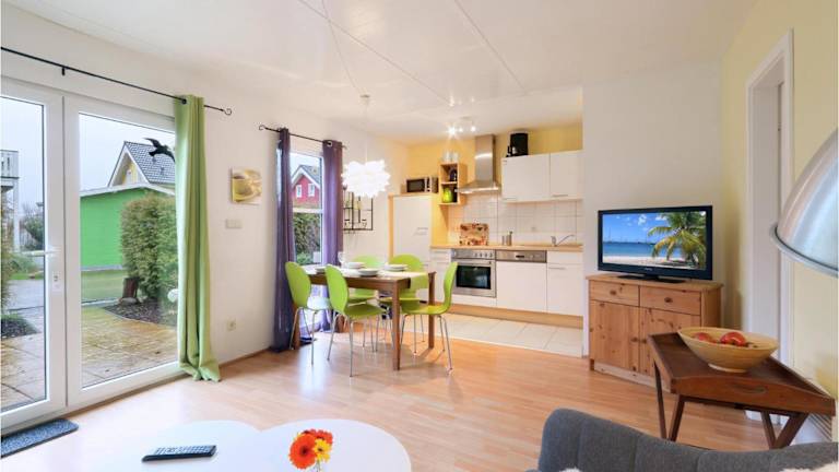 Die Unterkunft verfügt über zwei Schlafzimmer, ein Wohnzimmer und ein Badezimmer mit Dusche. Zudem gibt es einen Flachbild-TV zur Unterhaltung. Bettwäsche und Handtücher müssen selbst mitgebracht oder gegen eine Gebühr von 15 Euro pro Person vor Ort gemietet werden.