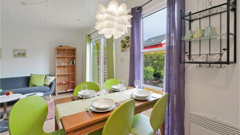 Das Ferienhaus umfasst zwei Schlafzimmer, ein Wohnzimmer und eine voll ausgestattete Küche. Ein Badezimmer mit Dusche gehört ebenfalls zur Ausstattung. Es besteht die Möglichkeit, Bettwäsche und Handtücher gegen Gebühr zu mieten.