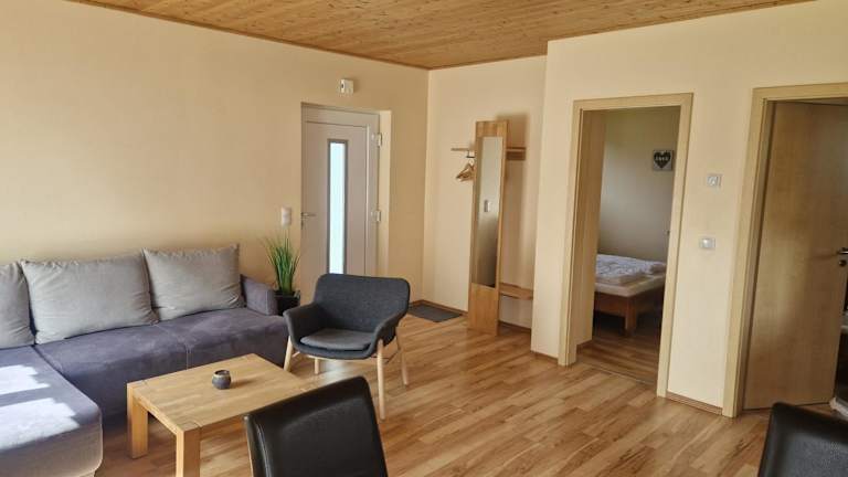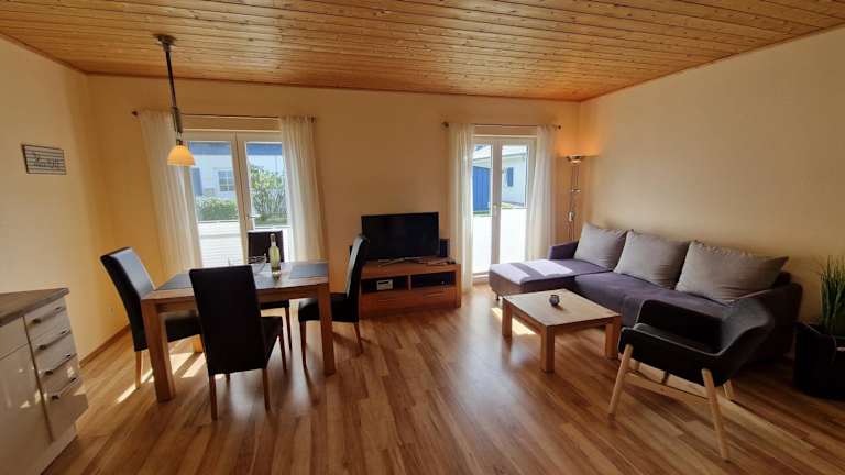 Die Ferienwohnung bietet 2 Schlafzimmer, ein Badezimmer, Bettwäsche sowie Handtücher. Zudem stehen ein Flachbild-TV, ein Essbereich, eine voll ausgestattete Küche und eine Terrasse mit Gartenblick zur Verfügung.