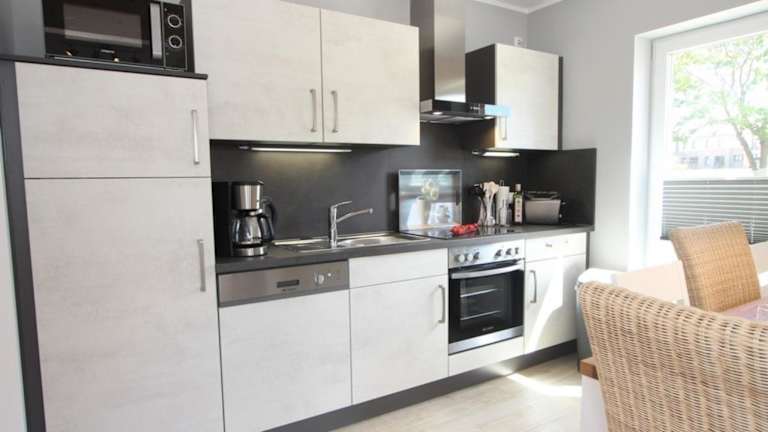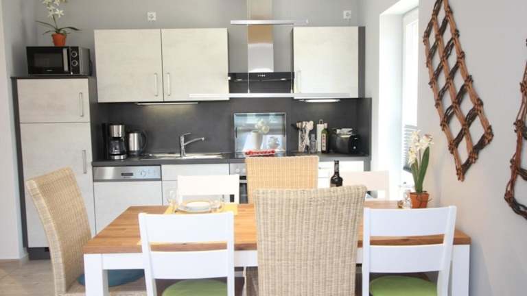 Die Unterkunft beinhaltet eine voll ausgestattete Küche mit Kühlschrank und Kaffeemaschine. Es gibt die Möglichkeit, einen Grill zu nutzen.