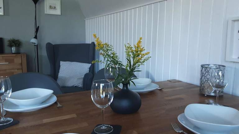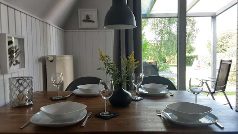 Das Ferienhaus umfasst zwei Schlafzimmer und ist mit einem TV sowie einer voll ausgestatteten Küche eingerichtet, die einen Kühlschrank, Geschirrspüler, Waschmaschine, Ofen und Mikrowelle beinhaltet. Handtücher und Bettwäsche werden bereitgestellt, um den Gästen einen angenehmen Aufenthalt zu gewährleisten.
