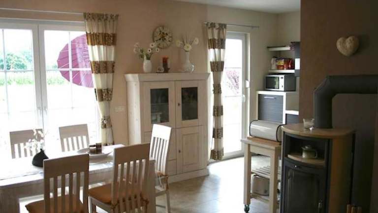 Das Ferienhaus verfügt über eine voll ausgestattete Küchenzeile mit Kühlschrank und Geschirrspüler, die eine unabhängige Selbstversorgung ermöglicht. Essen wird nicht direkt angeboten, jedoch sind alle nötigen Utensilien vorhanden.