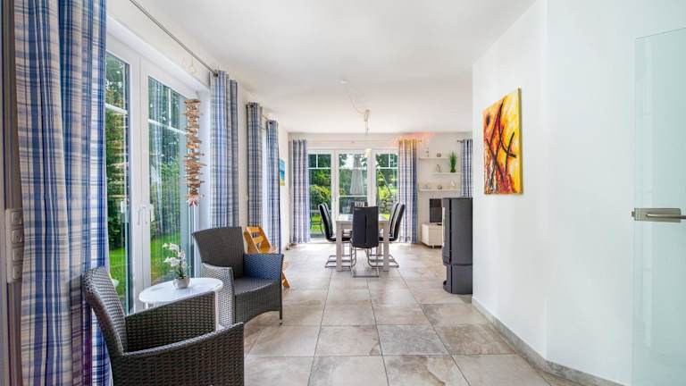 Das Ferienhaus Stella Oliva befindet sich in Middelhagen, nur 700 m vom Grossen Strand entfernt und 300 m vom Göhren Südstrand. In der Umgebung gibt es zahlreiche Freizeitmöglichkeiten sowie die Naturbühne Ralswiek in 35 km Entfernung und das Nationalpark-Zentrum Königsstuhl in 45 km Distanz.