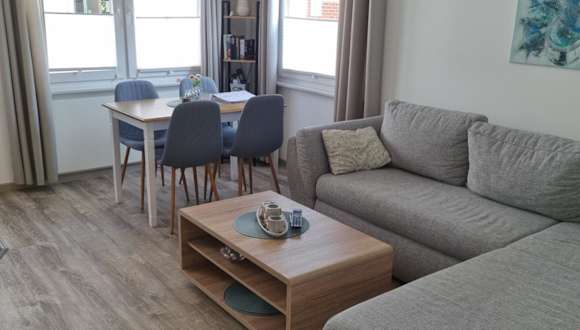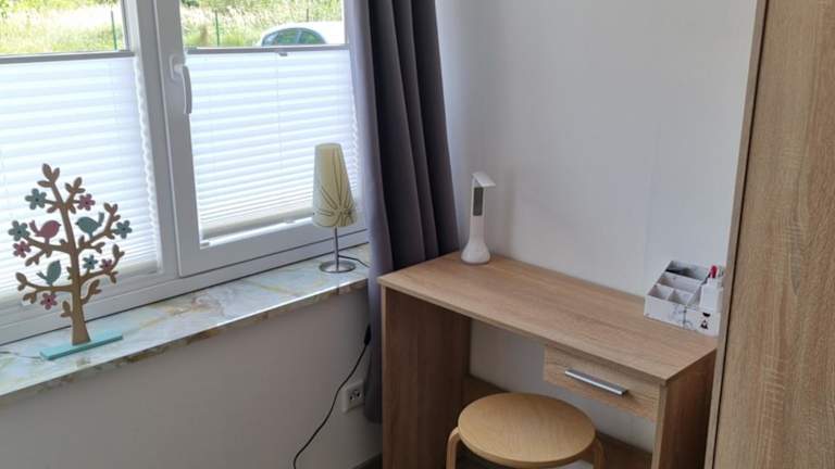 Die Ferienwohnung umfasst ein Schlafzimmer, ein Wohnzimmer und ein Badezimmer mit Dusche. Zu den Annehmlichkeiten zählen ein Flachbild-TV, ein Kühlschrank sowie ein Ofen. Handtücher und Bettwäsche werden bereitgestellt. Die Wohnung bietet zudem eine Terrasse mit Gartenblick.