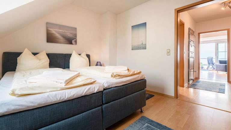 Die Ferienwohnung ist ausgestattet mit 2 Schlafzimmern und 1 Badezimmer. Sie ist mit Bettwäsche, Handtüchern, einem TV und einer voll ausgestatteten Küche versehen. Ein Balkon mit Meerblick sorgt für zusätzliche Bequemlichkeit.