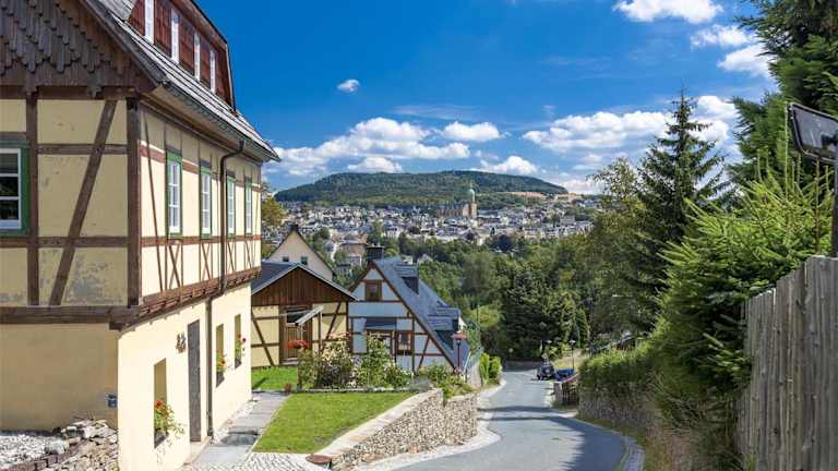 Das Ferienhaus Vierseitenhof befindet sich in Annaberg-Buchholz, in der Nähe von Fichtelberg und unweit von Chemnitz. Die Umgebung lädt zu verschiedenen Aktivitäten ein, insbesondere zum Velofahren und Wandern.