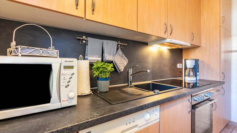 Die Ferienwohnung umfasst 2 Schlafzimmer und eine komplett eingerichtete Küche mit einem Kühlschrank und einem Geschirrspüler. Ein Badezimmer mit einer Dusche, kostenlosen Pflegeprodukten sowie eine Waschmaschine sind ebenfalls vorhanden. Handtücher und Bettwäsche werden bereitgestellt.