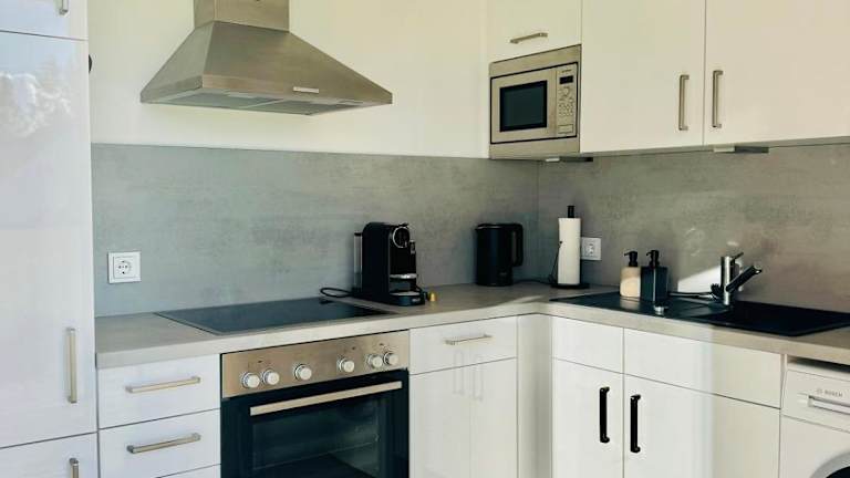 Das Ferienhaus im Erdgeschoss verfügt über 2 Schlafzimmer und ist ausgestattet mit einem TV sowie einer voll ausgestatteten Küche. Die Küche beinhaltet einen Kühlschrank, einen Geschirrspüler, eine Waschmaschine, einen Ofen und eine Mikrowelle.