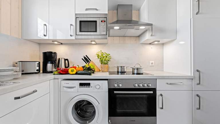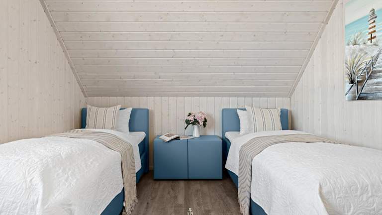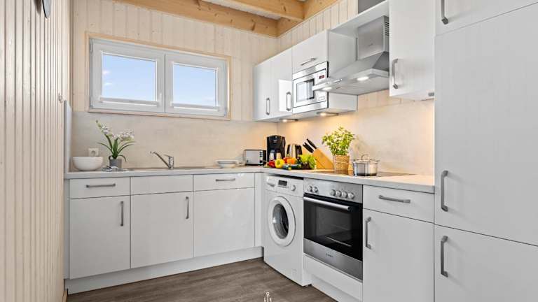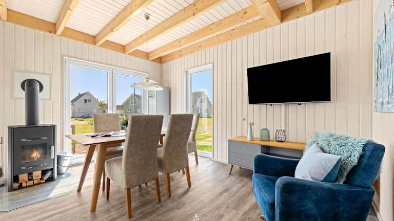 Das Ferienhaus bietet Platz in zwei Schlafzimmern, einem Wohnzimmer sowie einer gut ausgestatteten Küche mit Kühlschrank und Geschirrspüler. Ein TV ist ebenfalls vorhanden. Die Zimmer sind Nichtraucherzimmer und es sind Haustiere erlaubt.