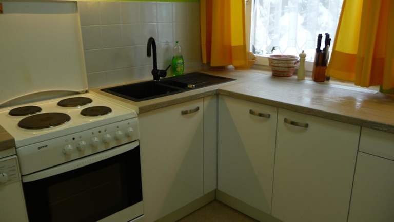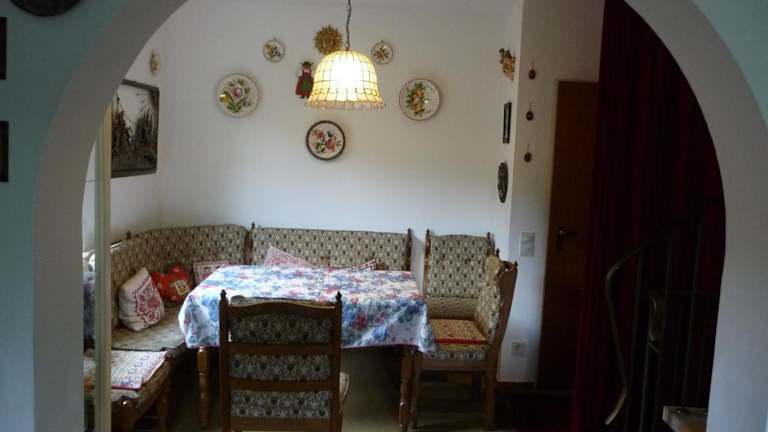 Das Ferienhaus bietet eine Gemeinschaftsküche, in der die Gäste ihre Mahlzeiten selbst zubereiten können. Es sind keine weiteren Verpflegungsmöglichkeiten angegeben.