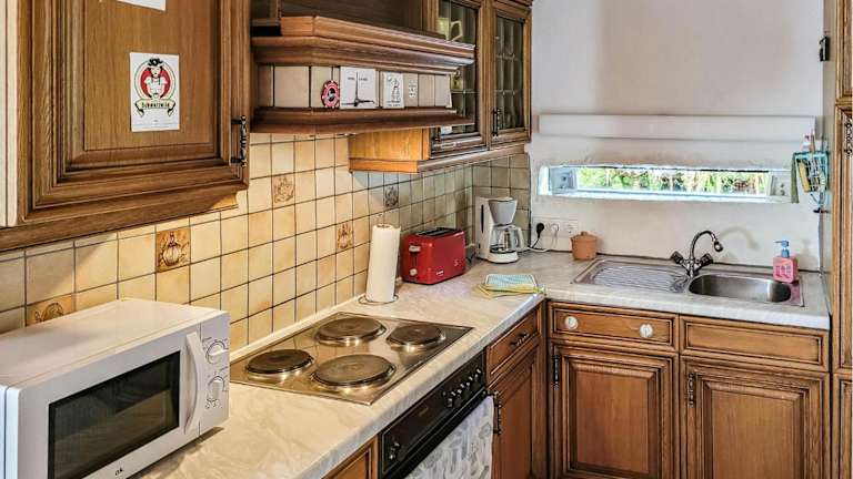 Das Ferienhaus besteht aus zwei Schlafzimmern, einem Wohnzimmer und einer voll ausgestatteten Küche, die mit einem Kühlschrank und einer Kaffeemaschine ausgestattet ist. Zur Ausstattung gehören zudem ein TV, ein DVD-Player sowie ein CD-Player.