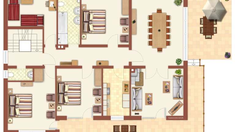 Die Zimmer im Ferienhaus Willkommen sind mit einem Flachbild-TV und einem eigenen Badezimmer ausgestattet. Die Küche bietet eine vollständige Ausstattung, darunter Kühlschrank, Geschirrspüler, Ofen, Herdplatte und Kaffeemaschine. Eine Terrasse lädt zum Entspannen im Freien ein.