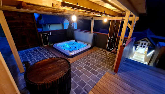 Die Unterkunft umfasst zwei Schlafzimmer und zwei Badezimmer, ausgestattet mit einer Dusche und einem Whirlpool. Zudem stehen ein gemütlicher Sitzbereich sowie eine Küche zur Verfügung. Ein Flachbild-TV sorgt für Unterhaltung.