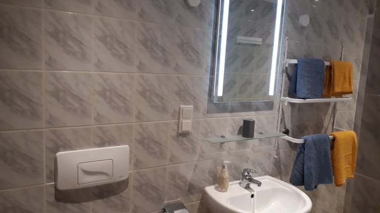 Im Obergeschoss befindet sich 2 Schlafzimmer mit ca. 13m² und ca. 20m², beide Zimmer verfügen über ein Doppelbett mit 160x200cm, Kleiderschrank und TV. Das größere Zimmer verfügt zusätzlich über eine ausziehbare Schlafcouch (Liegefläche ca. 140x200cm) und über einen Tisch mit 2 Stühlen. Ebenfalls im Obergeschoss befinden sich 2 Duschbäder mit ca. 7m² und 4m² sowie ein kleiner Flur mit ca. 2m². Das Dachgeschoss verfügt über 2 Schlafzimmer mit ca. 12m² und ca. 16m², beide Zimmer sind mit einem Doppelbett mit 160x200cm, Kleiderschrank und TV sowie einem Tisch mit 2 Stühlen möbliert. Das größere Zimmer verfügt zusätzlich über eine Sitzcouch. 2 Duschbäder mit ca. 5m² und 2m² sowie ein kleiner Flur mit ca. 4m² stehen hier ebenfalls zur Verfügung.