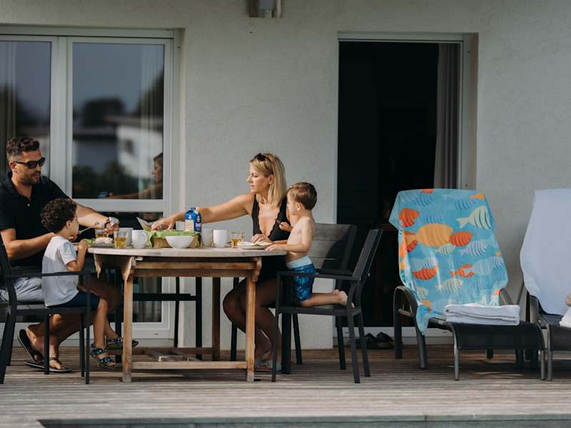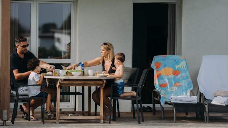 Im Ferienhaus XL sind Wohneinheiten mit einer Veranda/Patiomöglichkeit verfügbar. Die Zimmer verfügen über kostenloses Wifi, einen Sitzbereich, einen Satelliten-Flachbild-TV und eine voll ausgestattete Küche mit Kühlschrank und Geschirrspüler. Ein eigenes Badezimmer mit Dusche und Haartrockner sowie eine Kaffeemaschine sind ebenfalls vorhanden.