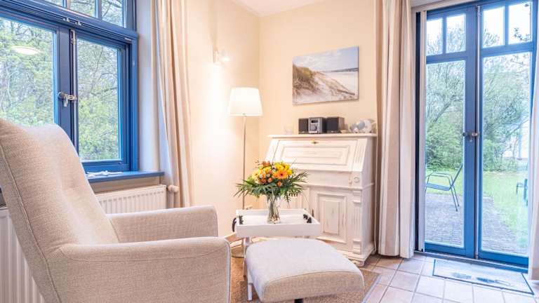Die Ferienhaussiedlung Strandperlen Sanddornhof 6b (Typ VII) bietet eine Terrasse mit Gartenblick und umfasst ein Ferienhaus, das über einen eigenen Garten verfügt. Zudem besteht die Möglichkeit, kostenlos zu parkieren.