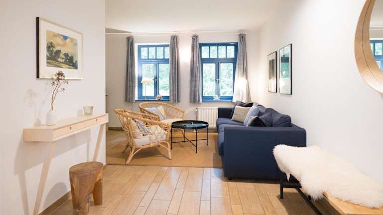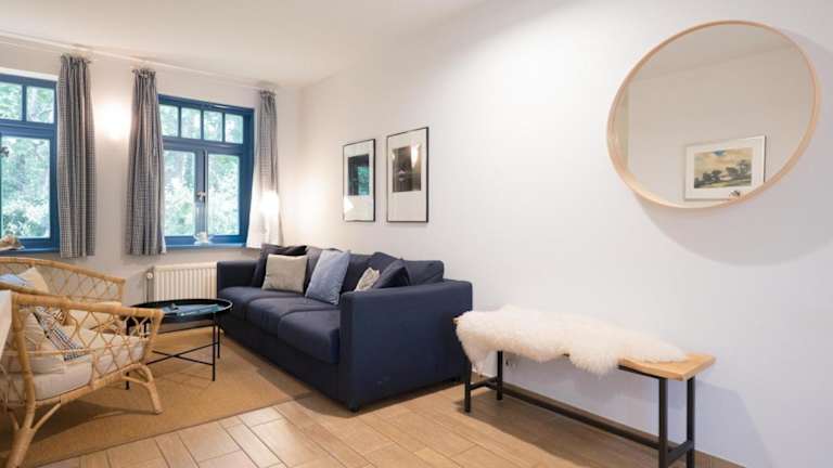 Die Ferienhaussiedlung Strandperlen Weidenhof 9a (Typ VII) liegt in Wustrow und ist nur 400 m vom Strand entfernt. Die Unterkunft bietet einen herrlichen Blick auf den Garten und liegt in der Nähe von anderen beliebten Stränden wie Ahrenshoop. Der Yachthafen Warnemünde ist ebenfalls leicht erreichbar. Der nächstgelegene Flughafen, Rostock-Laage, ist etwa 59 km entfernt.
