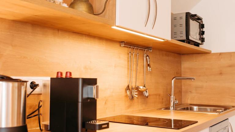 Die Ferienwohnung ist ausgestattet mit 1 Schlafzimmer, 1 Badezimmer, Bettwäsche, Handtüchern, einem Flachbild-TV mit Kabelkanälen, einem Essbereich sowie einer voll ausgestatteten Küchenzeile. Ein Balkon mit Gartenblick ergänzt die Bequemlichkeit.