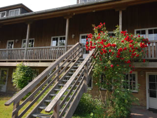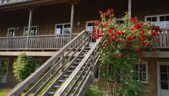 Im MITTENMANG erwarten Sie helle und freundliche mit modernem Komfort ausgestattet Wohnungen. Freuen Sie sich auf frisch bezogene Betten und über die kleinen Dinge des täglichen Lebens, die wir für Sie dort bereitlegen. Lassen Sie Ihren Blick beim morgendlichen Frühstück vom Balkon über die malerische Landschaft schweifen oder Sie lassen sich verwöhnen und genießen ein großzügiges Frühstück in unserem Landcafé. Gerne können wir Ihnen auch abends eine warme Mahlzeit servieren. Die Wohnungen Obst und Blume sind in einem Gebäude untergebracht und verfügen über einen großen Gemeinschaftsbalkon, auf der jeder sein persönliches Plätzchen findet. Der Balkon ist nach Süden ausgerichtet und hat einen freien Blick auf den Garten und Spielplatz. Sie können sich also mit einem guten Buch und einer Tasse Kaffee entspannen und haben dennoch Ihre Kleinen im Blick.