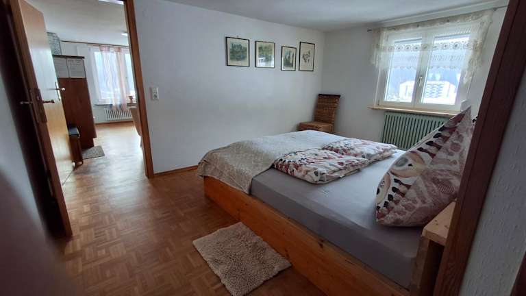 Die Ferienwohnung verfügt über ein Schlafzimmer, ein Wohnzimmer mit Flachbild-TV, eine gut ausgestattete Küchenzeile mit Kühlschrank und Ofen sowie ein Badezimmer mit Dusche. Handtücher und Bettwäsche werden bereitgestellt. Eine Terrasse mit Gartenblick ergänzt die Ausstattung.