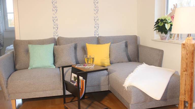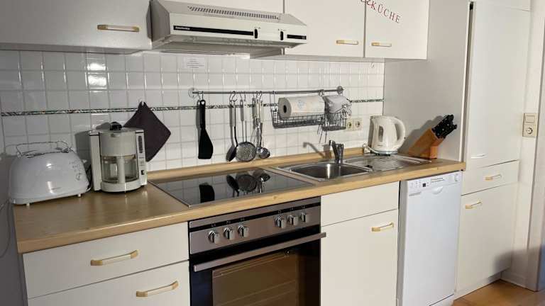 Die Ferienwohnung umfasst ein Schlafzimmer, ein Wohnzimmer und eine voll ausgestattete Küche mit Kühlschrank und Kaffeemaschine. Das Badezimmer ist mit einer Dusche sowie kostenlosen Pflegeprodukten ausgestattet. Handtücher und Bettwäsche werden bereitgestellt.