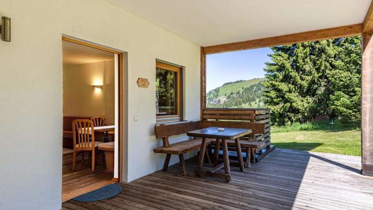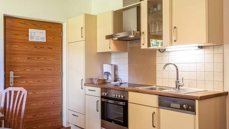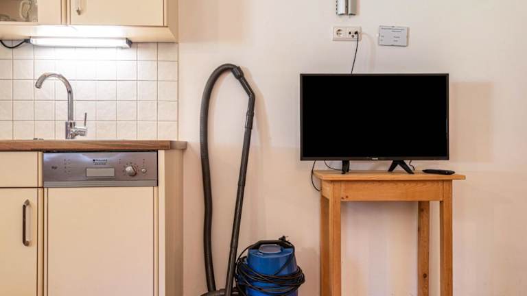 Die Ferienwohnung verfügt über einen Balkon mit Bergblick, ein Schlafzimmer, ein Wohnzimmer, einen Satelliten-TV sowie eine gut ausgestattete Küche. Ein Badezimmer mit Dusche und Badewanne ist ebenfalls vorhanden. Handtücher und Bettwäsche werden gestellt.